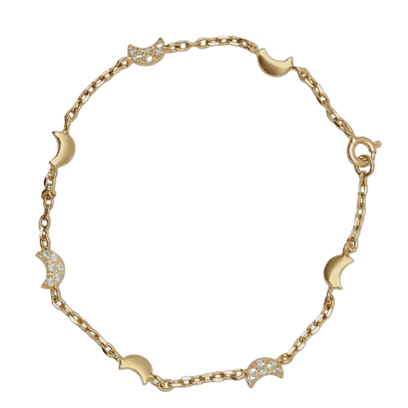 Lasciati incantare dal fascino della notte. Questo bracciale in argento 925 alterna la purezza di lune lisce e satinate alla brillantezza di lune impreziosite da zirconi bianchi.