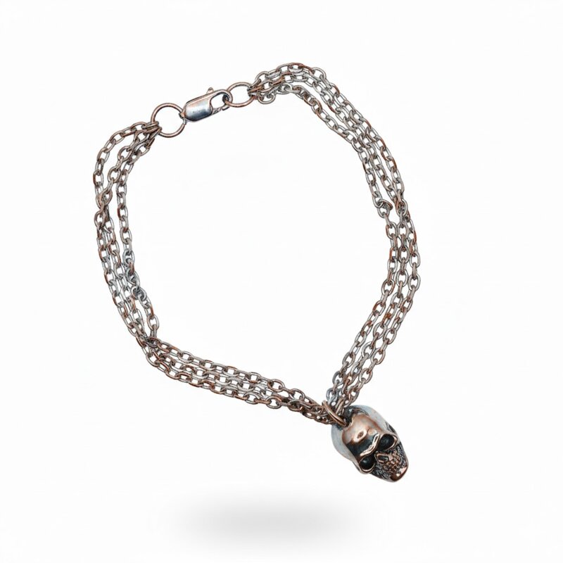 Il pendente teschio aggiunge un tocco audace e originale, rendendo questo bracciale un pezzo unico nel tuo guardaroba.