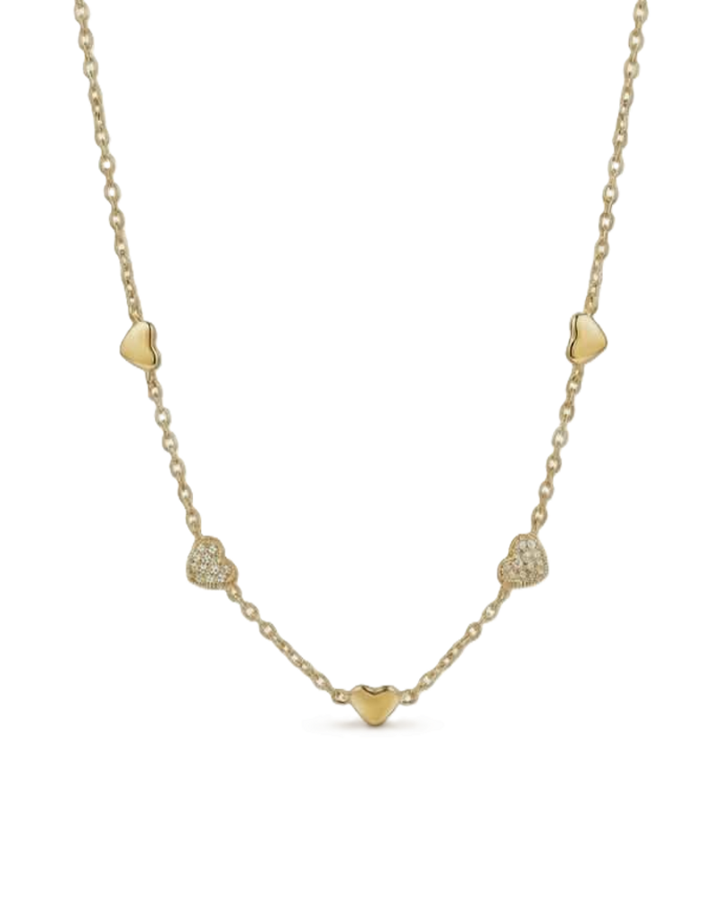 Un design essenziale che celebra la simmetria: cuori in argento lucido si alternano a cuori tempestati di zirconi, creando un gioiello versatile e luminoso. La scelta ideale per illuminare il tuo outfit, dal mattino in ufficio a una serata speciale.
