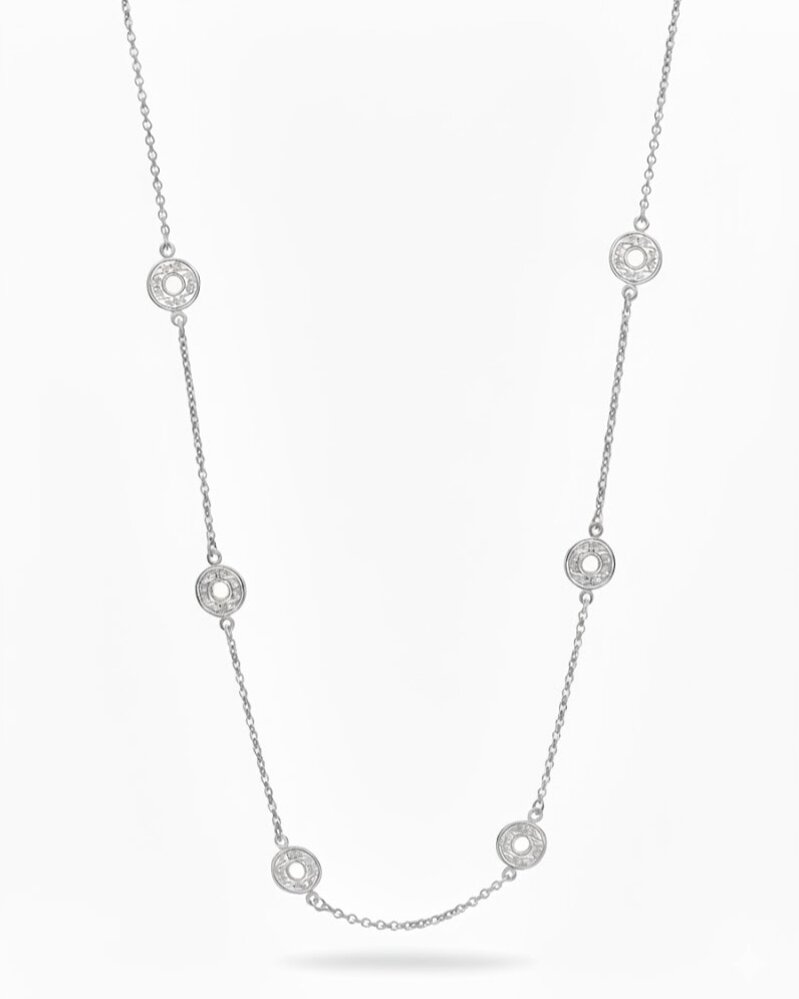 Questa elegante collana è caratterizzata da una catena con elementi rotondi che catturano la luce in modo straordinario, donando un tocco di classe e raffinatezza a qualsiasi outfit.