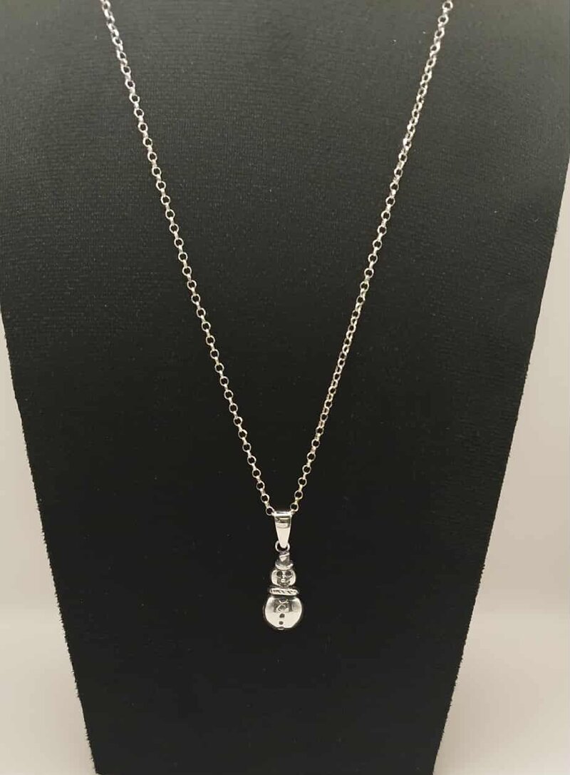 Pendente: Il ciondolo è lavorato in Argento 925, scolpito in una dettagliata forma tridimensionale di pupazzo di neve.