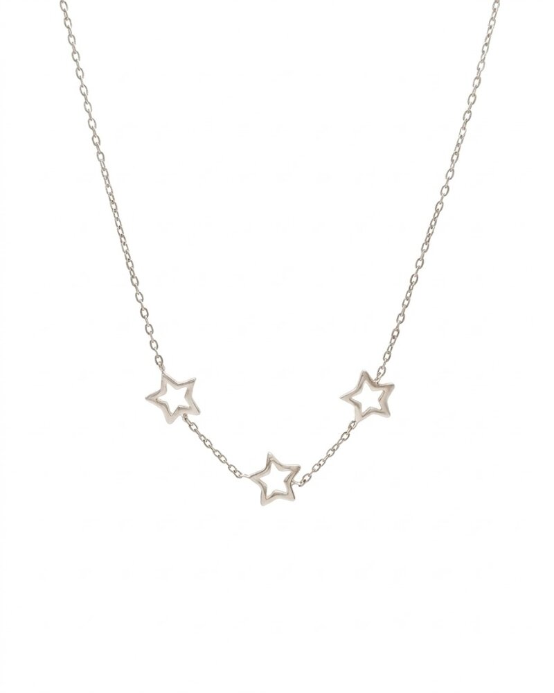 Porta sempre con te un pezzetto di firmamento. Questa collana in Argento 925 celebra la luce e i desideri attraverso tre stelle dal design contemporaneo. Ogni stella, rifinita con una lucidatura a specchio, presenta un raffinato traforo centrale che cattura la luce ad ogni tuo movimento.