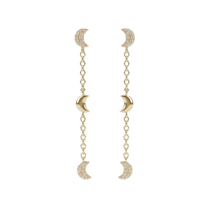 Lasciati avvolgere dalla magia delle stelle. Questi orecchini pendenti in argento 925 celebrano il mistero della luna con un design a cascata sofisticato e magnetico.