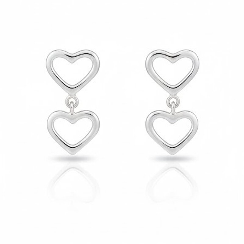 Caratterizzati da un design dinamico con due cuori in argento 925 dalla finitura lucida, questi gioielli danzano ad ogni tuo movimento, catturando riflessi di luce unici.