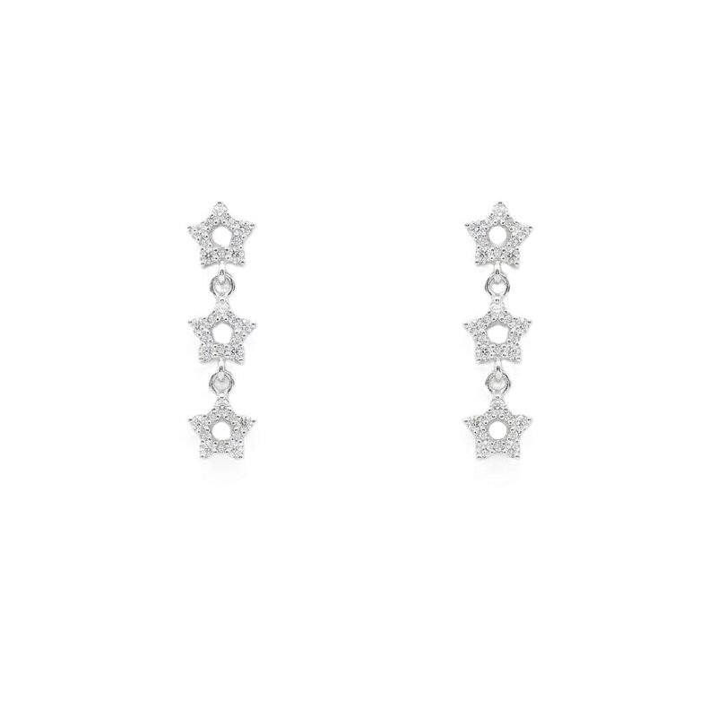 Tre stelle, un'infinità di riflessi. ✨ Questi orecchini in argento 925 sono impreziositi da una cascata di zirconi incastonati a mano, pronti a illuminare il tuo viso con una luce purissima. Non sono semplici orecchini, sono piccoli frammenti di galassia da indossare nelle tue occasioni più speciali. Lasciati abbagliare.