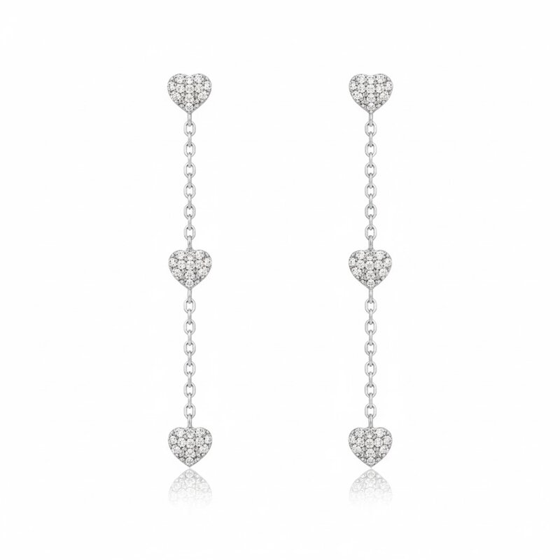 Tre cuori che scendono con eleganza, pronti a illuminare il tuo viso e a seguire ogni tuo movimento con dolcezza.