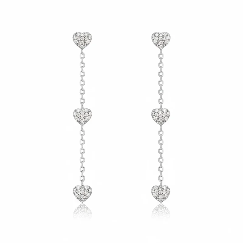 Tre cuori che scendono con eleganza, pronti a illuminare il tuo viso e a seguire ogni tuo movimento con dolcezza.